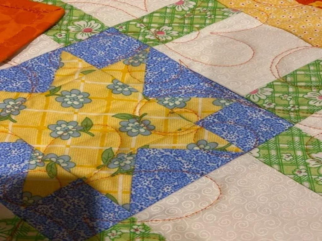 A fun quilted table runner by Margaret, just in time for the fall season. Looks really cute!